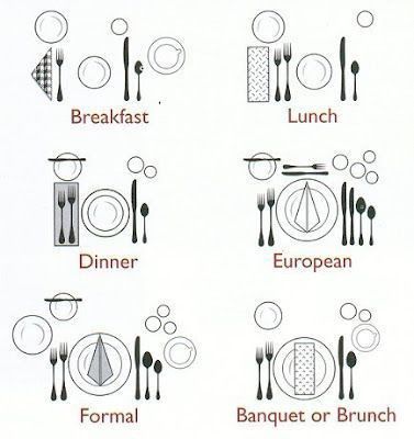 Since each yacht has its own preferred style of service, make sure to consult with your senior or chief steward/ess and have them double check your work! Take note of how many courses to expect, what's being served, and the formality of the meal. Also consult the chef or chief steward/ess if there are any other considerations to be made such as theme nights, specialty food accessories, number of guests, size of the table, etc. Make sure you have the corresponding items in the right position on the table. Refer to the picture above for a guide to the various settings.