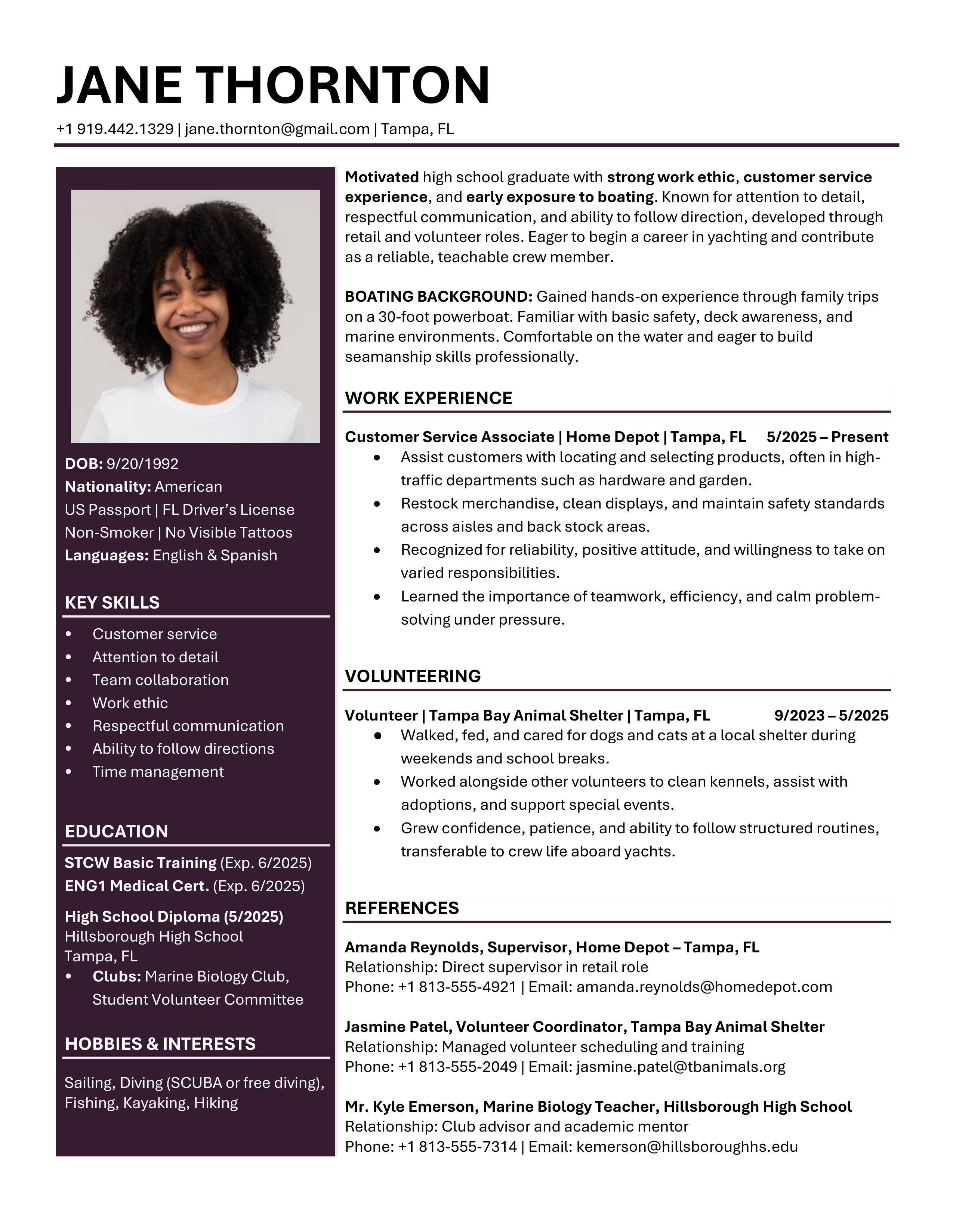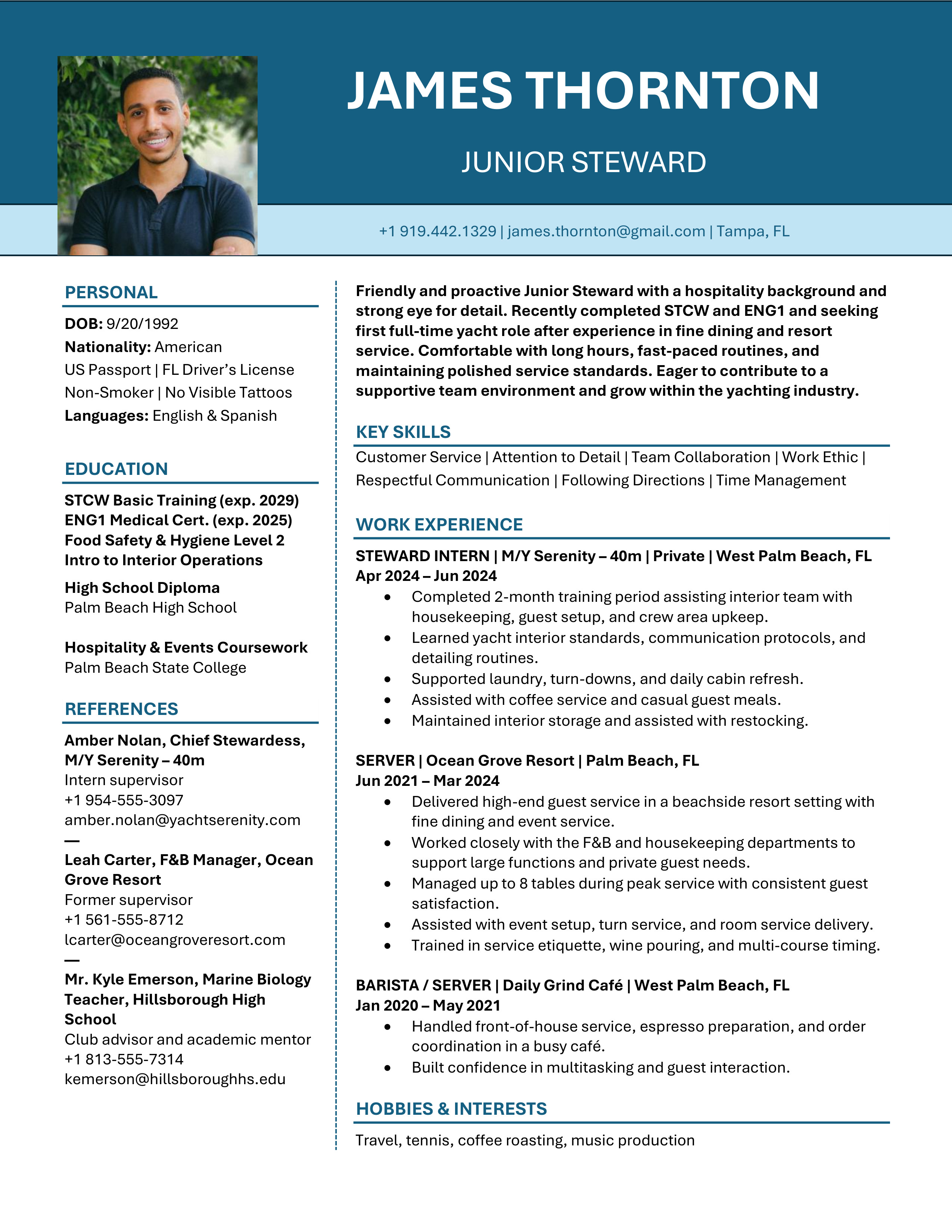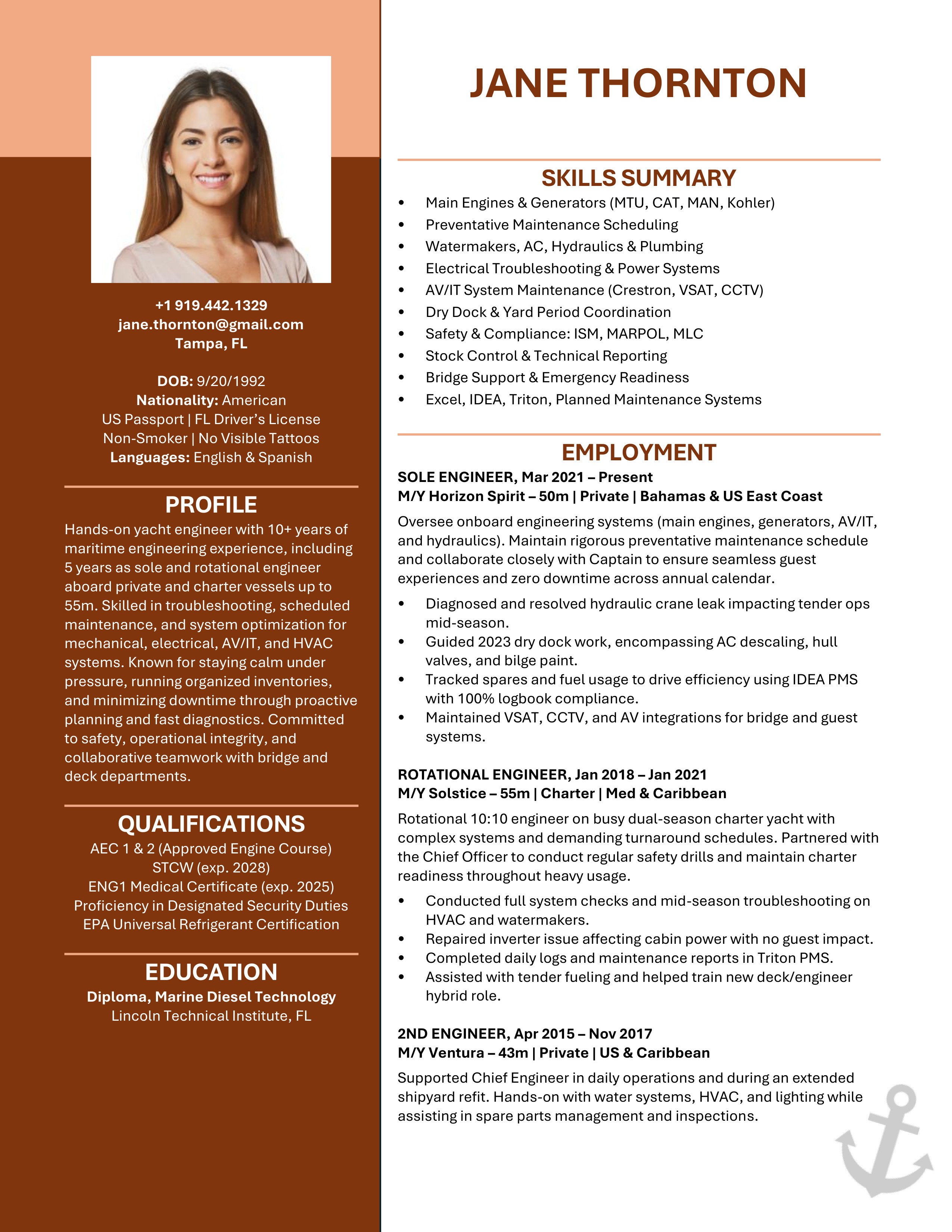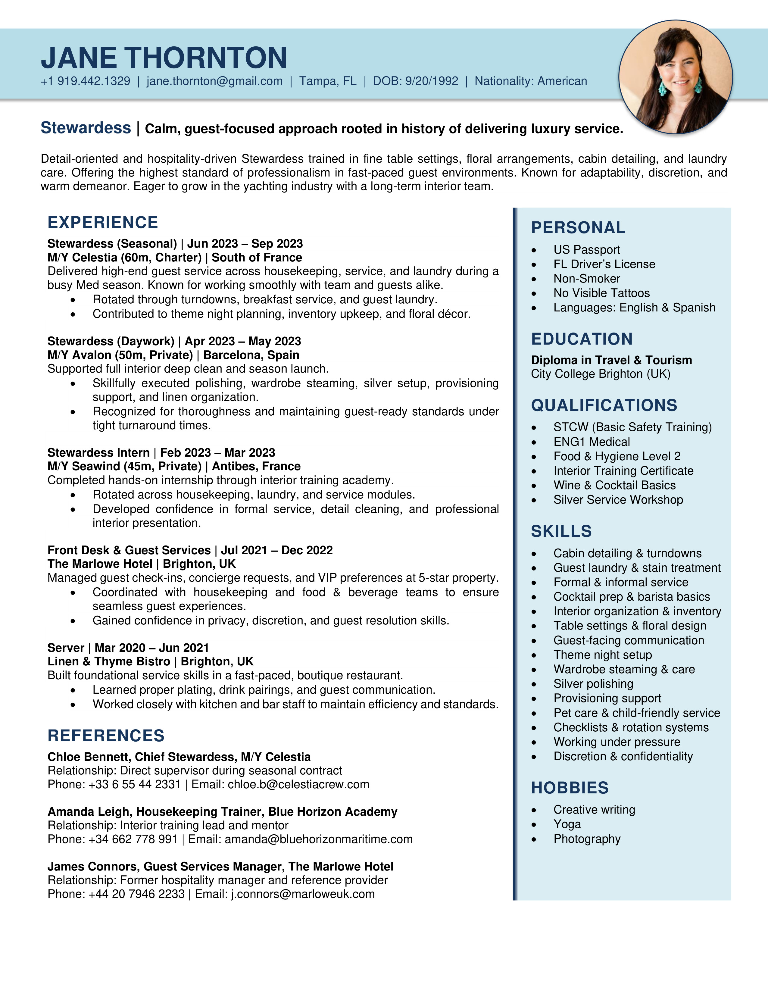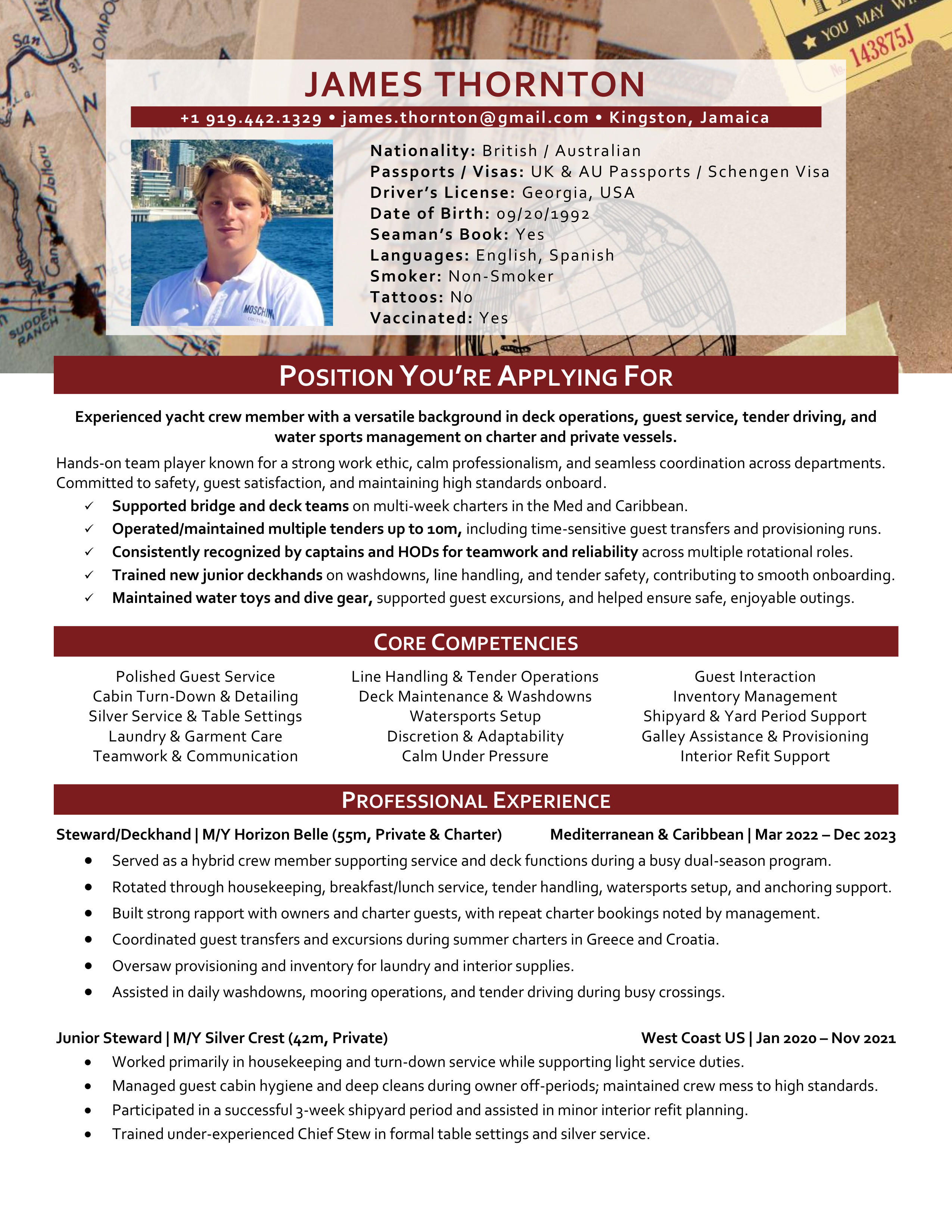 A polished yacht CV template designed to clearly showcase your qualifications, skills and experience. Easy to edit and built to meet recruiter, management company, captain and HoD expectations. You will receive both the Microsoft Word and the Google Doc versions. Includes access to the CV Support Hub where you will find an easy to follow How-To Guide and short step by step How-To Videos.